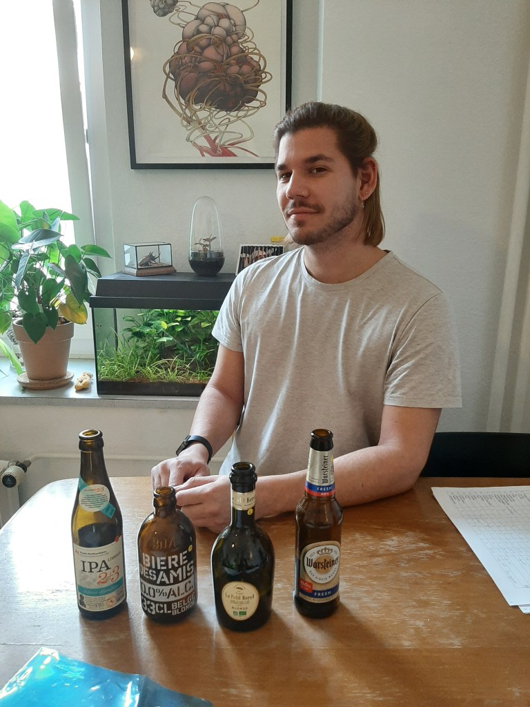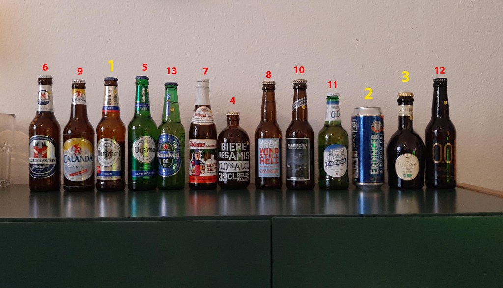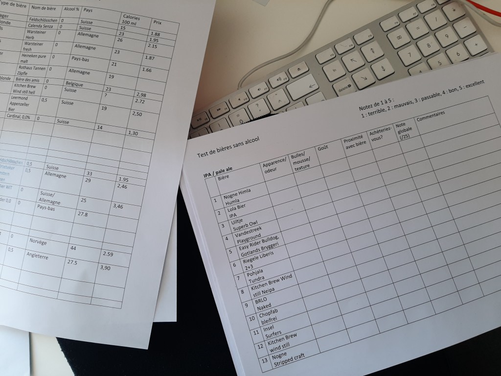 Face à une telle abondance, quelques choix s’imposaient, sinon croyez-moi, j’y serais encore, et le postier aussi. Tout d’abord: fragmenter. Dans cet article, je parlerai des bières sans alcool et dans un autre, je m’attarderai sur les vins et les spiritueux. Histoire de rendre le tout digeste. Ensuite: faire des choix (plus ou moins) raisonnables et forcément limitants. Inutile de passer commande (à prix fort) pour une Leffe sans alcool, même gonflée à max, la commande ne dépassait pas les exorbitants frais d’envoi… Troisièmement: me concentrer sur quatre types de bières (dont deux principaux): les blondes, les IPA et quelques blanches et stouts pour l’expérience. Je laisse tomber les panachés et autres bières fruitées se rapprochant davantage d’une boisson sucrée rafraichissante que d’une vraie bière. Enfin, dernier choix: réunir un jury tout terrain, car toute seule je ne m’en sortirais pas et je ne serais pas objective.